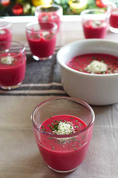 Para estas fiestas pasadas las preparé en forma de chupito. A mis hijos les gustó mucho. Y a los mayores les encantó su sabor y textura. Ahora que ya no estamos en tiempos de fiesta también nos es efectiva para una dieta baja en calorías ya que esta crema es muy sana y sólo tiene unas 80 kcal por cada 100 g. Si queréis saber más sobre la remolacha aquí encontrareis más información